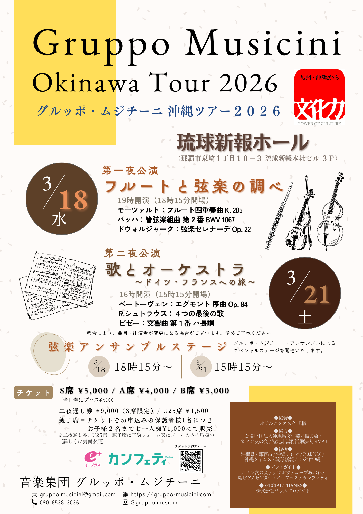 ※U25席、二夜通し券、親子席は「チケット申込フォーム」またはメール(gruppo.musicini@gmail.com)のみの取り扱いとなります。