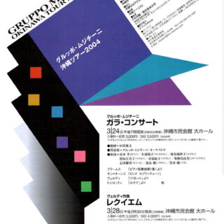 指揮/田代俊文 ヴァイオリン/久保陽子 ピアノ/弘中孝 ソプラノ/玻名城律子、照屋江美子、赤嶺紀子 メゾ・ソプラノ/牧野真由美 テノール/志田雄浩 バリトン/翁長剛 バス/黒木純 管弦楽/グルッポ・ムジチーニ・オーケストラ
