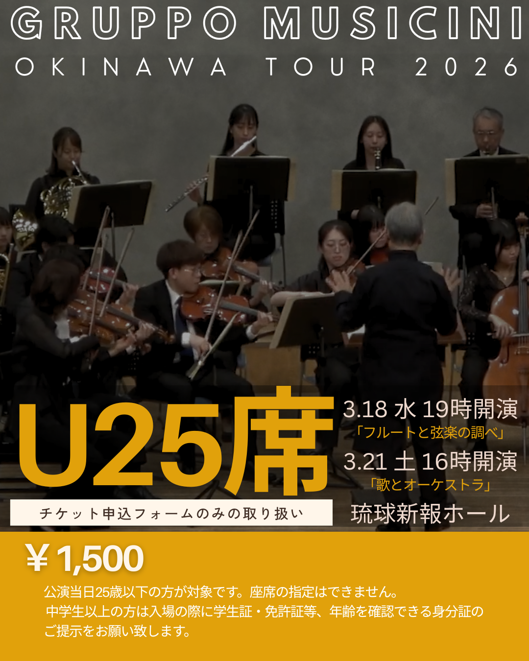 グルッポ・ムジチーニ沖縄ツアー2026では、公演当日25歳以下の方を対象とした、1,500円でご鑑賞いただけるお得なお席をご用意しております!